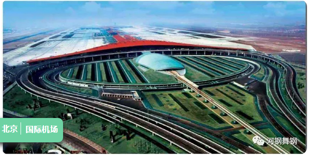北京首都國際機場3號航站樓,建筑面積90多萬平方米,新增機位99個;新建一條長3800米、寬60米的跑道,世界上最大的客機空客A380也能夠順利起降。此外,新建北貨運區,相應配套建設場內交通系統,以及供水、供電、供氣、供油、通導、航空公司基地等設施。其中,關鍵部位使用河鋼舞鋼板建造。
